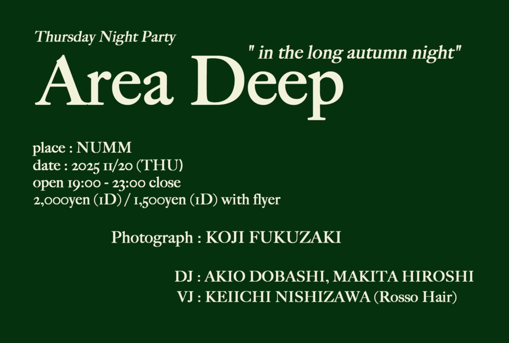 thursday night party “Area Deep” を青山ZEROで隔月にてスタート。